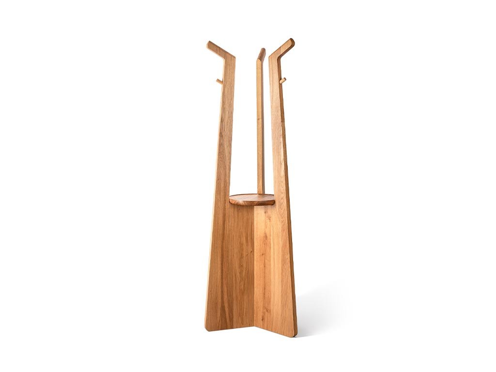 Stojací věšák z masivního dřeva vytvořený stejným plochým elementem jako u věšáku TWIG. Věšák HUB je navrhnutý tak, aby spodní část byla masivnější a dodala prvku potřebnou stabilitu. Vrchní část je štíhlá a má dva typy věšáků. Menší na zavěšení kšiltovky, kabelky nebo bundy s poutkem, větší na rychlé pověšení kabátu. Srdcem věšáku HUB je vnitřní středový tác, který slouží na odložení klíčů, peněženky nebo jiných drobných věcí.